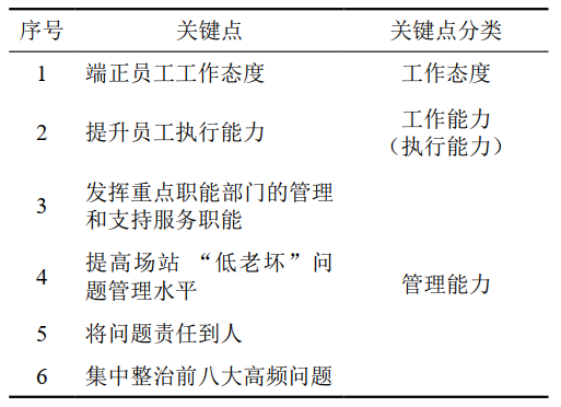 表 2 “低老壞”問(wèn)題整治關(guān)鍵點(diǎn)