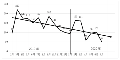 圖 6 2019年2月至2020年7月“低老壞”問(wèn)題統計圖