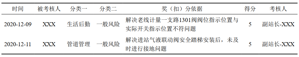表 3 河口輸氣站試點(diǎn)積分制考核記錄表(示例)