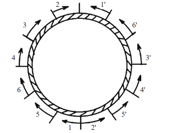 圖 4 Φ 1219 mm管道焊口打底焊接順序