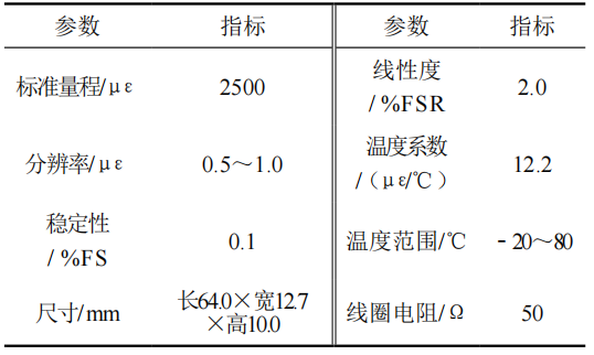 選用英國巖土ST1型振弦式應變計進(jìn)行應力應變數據傳感。其傳感器可通過(guò)超長(cháng)電纜準確重復測讀,具有長(cháng)期穩定性及可靠性。傳感器和線(xiàn)圈均可回收重復使用。傳感器主要技術(shù)指標見(jiàn)表 1。