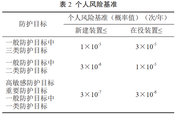 個(gè)人風(fēng)險表示由于事故而導致特定防護目標的個(gè)人死亡概率,詳見(jiàn)表 2。
