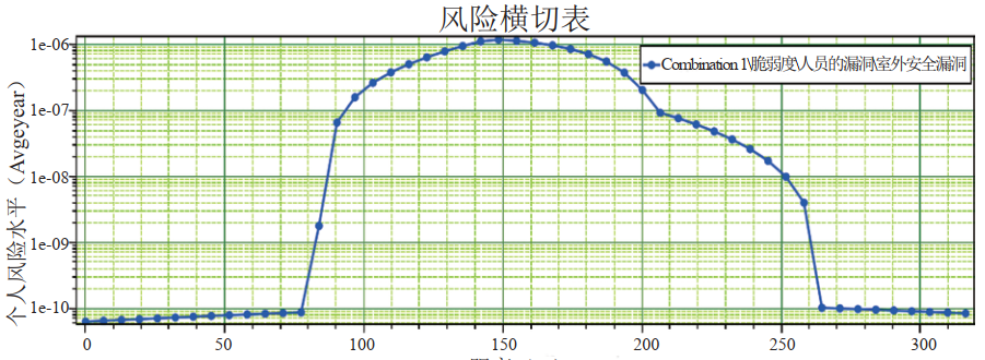 圖 2 國內某管道特定位置個(gè)人風(fēng)險橫切圖