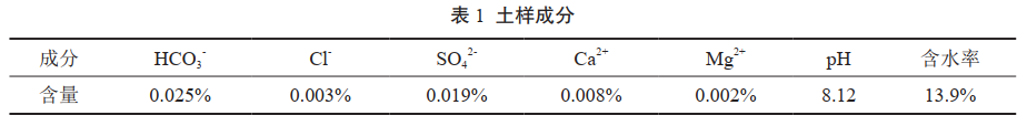現場(chǎng)埋片位置的土壤理化性能如表 1所示,土壤中含有少量的Cl-和SO42-,含水率為13.9%。