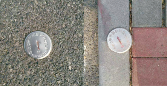 此外,在道路兩側設置高后果區標示牌、警示牌,在路面布設管道標識(圖 2)。與道路管理部門(mén)建立聯(lián)動(dòng)機制,如遇道路建設施工提前與管道企業(yè)聯(lián)系,由專(zhuān)業(yè)人員探測確認管道準確位置和埋深,做好安全防護。管道巡護人員與道路巡護人員建立聯(lián)系,巡檢過(guò)程中發(fā)現問(wèn)題相互通報,信息共享,共保雙方設施安全。