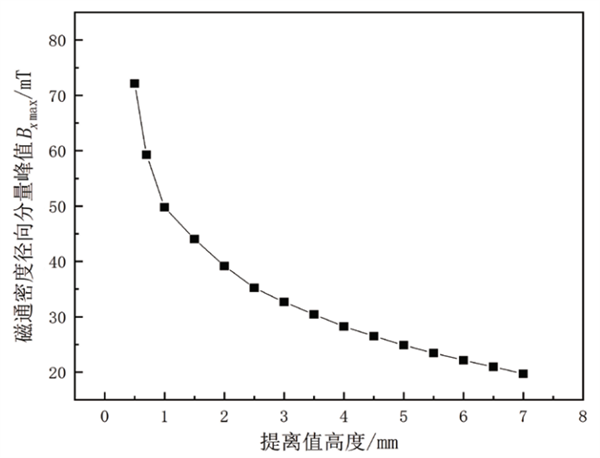 圖 4 不同提離值時(shí)磁通密度徑向分量的峰值