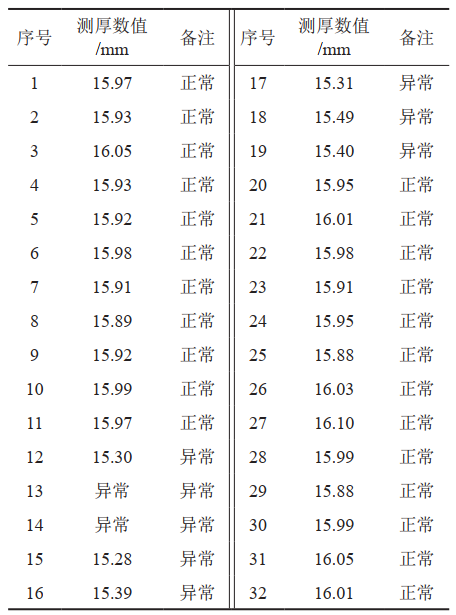 表 2 壓力管道測厚驗證數據表