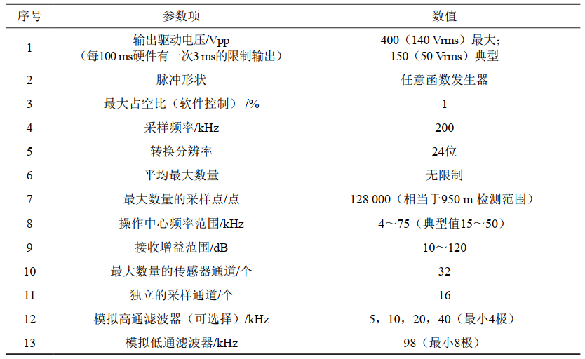 表 1 超聲導波檢測設備參數表