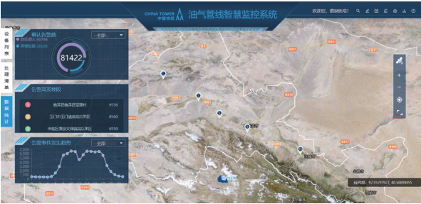 酒泉輸油氣分公司地處“河西走廊”,主要負責管轄西氣東輸一、二、三線(xiàn)管道,鄯蘭原油管道、烏蘭成品油管道及油氣分輸支線(xiàn)共15條管道,總長(cháng)度達4000多公里。長(cháng)期以來(lái),油氣管道日常巡護主要以人工徒步巡查方式為主,耗時(shí)長(cháng)、效率低,且野外地形復雜,一些“巡檢盲區”難以通行;管道周邊常有地質(zhì)災害、第三方施工等瞬時(shí)發(fā)生的安全風(fēng)險;人口密集型高后果區多,稍有不慎就有可能造成嚴重后果。以傳統的人力巡護方式已無(wú)法適應快速變化的外部安全風(fēng)險挑戰。2019年以來(lái),分公司依托河西走廊內中國鐵塔架設遠距離(覆蓋半徑2 km)高清攝像機,通過(guò)采用人工智能監控技術(shù),較好地解決了這一難題。