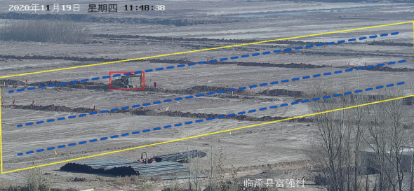 (2)電子圍欄、管線(xiàn)位置設置。攝像頭每個(gè)預置位的畫(huà)面回傳之后,系統讀取該畫(huà)面,呈現在WebGIS客戶(hù)端,可由用戶(hù)自行根據管線(xiàn)位置繪制電子圍欄。電子圍欄可減少用戶(hù)的無(wú)效報警,系統只針對電子圍欄區域內的目標進(jìn)行識別和報警,而電子圍欄之外即使出現了施工行為,系統不做任何處理,從而大幅度降低了無(wú)效報警,切合用戶(hù)實(shí)際使用場(chǎng)景。
