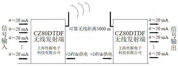 (2)無(wú)線(xiàn)傳輸和接收。CZ80DTD是一款無(wú)需布線(xiàn)即可遠傳模擬量而精心設計的工業(yè)級產(chǎn)品,包括發(fā)射端和接收端兩部分。發(fā)射端由數據采集板和 DTD 無(wú)線(xiàn)傳輸模塊組成,負責采集數據;接收端由數據轉換板和 DTD 無(wú)線(xiàn)傳輸模塊組成,負責接收并還原數據。該設備具有零調試、高精度(0.15%)、上電自動(dòng)連接/無(wú)需外部網(wǎng)絡(luò )或電臺等特點(diǎn)。數據終端由工業(yè)級模塊和高速單片機系統兩大部分組成,利用無(wú)線(xiàn)網(wǎng)絡(luò )技術(shù),以點(diǎn)對點(diǎn)方式將模擬量遠傳至終點(diǎn),同時(shí)再以模擬量形式輸出并供給后端采集器,如圖 4所示。該系統采集傳輸一體化,具有高度集成特點(diǎn),在降低成本的同時(shí)也提高了系統可靠性;具有較強的環(huán)境自適應能力,能在5 km距離內提供較高質(zhì)量的信號傳遞服務(wù),完全滿(mǎn)足現場(chǎng)機組到站控室的距離。