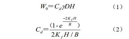 式中:γ為土層重度,N/m3;B為溝槽寬度,m;W0為單位管長(cháng)的豎向永久荷載,N/m;Cd為土壓力集中系數;D為管徑,m;H為管頂覆土厚度,m;Kf為土壤吸附作用強度系數,砂土及腐殖土(干燥)0.192,砂土、腐殖土(濕的和飽和的硬黏土)0.165,塑性黏土0.148,流動(dòng)性黏土0.132。表 1取砂土及腐殖土(干燥)Kf為0.192進(jìn)行計算。
