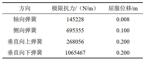表 3 粉質(zhì)黏土三向土彈簧參數表