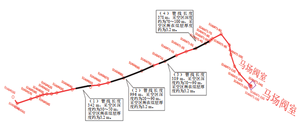 圖 3 下方存在疑似采空區的管線(xiàn)區段(黑色部分)