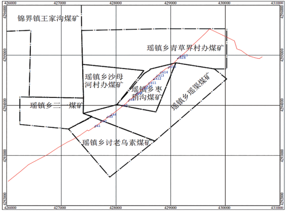圖 1 錦界段遷改工程煤礦采空區分布圖