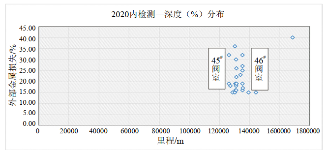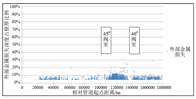 圖 3 良西段內檢測深度大于15%外部金屬損失分布