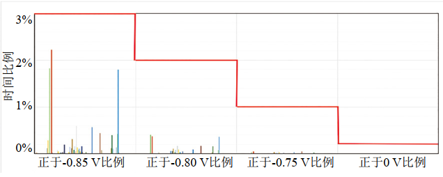 圖 1 良西段監測腐蝕速率與正于-0.85 Vcse時(shí)間比例分布