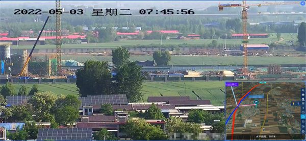 (3)定向查圖功能。監控視頻界面點(diǎn)取需要查看的位置,攝像頭自動(dòng)指向目標位置,可與自定義POI結合使用,由于施工機械是移動(dòng)的,可以在地圖上點(diǎn)選快速查找,結合云臺控制功能進(jìn)行微調,并可截存本地錄像(圖 5)。