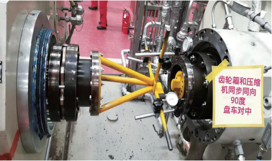 (1)拆卸聯(lián)軸器,在齒輪箱側半聯(lián)軸器上安裝對中支架。