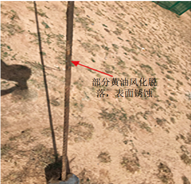(1)索系防護。檢測內容包括索防護層、索系錨具夾具及夾具螺栓、錨機防水等。檢測結果如圖 2所示,索系防護失效導致腐蝕,索系有效受力面積減小,其力學(xué)性能降低。分別從索防護層破損開(kāi)裂程度、錨具夾具及其螺栓銹蝕程度或螺栓松動(dòng)程度、錨具潮濕程度進(jìn)行評價(jià)。依據GB/T 37369-2019要求,銹蝕面積在10%以上建議立即更換。本次檢測結果未超出標準要求。