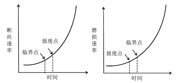 圖 4 斷絲、磨損臨界點(diǎn)與標準報廢點(diǎn)位置示意圖