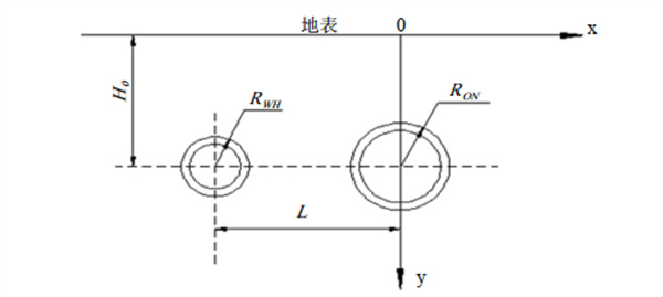 Ho管道中心距地表距離; RWH、 RON分別為摻水管、集油管半徑