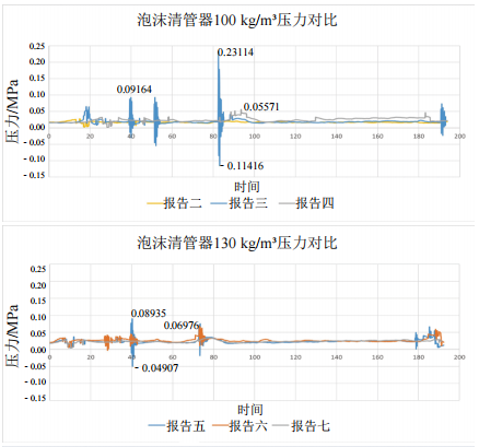 (1)密度為130 kg/m3的泡沫清管器運行壓差最小,運行期間壓力波動(dòng)最小。