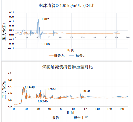 (3)全聚氨酯清管器運行期間壓力波動(dòng)較泡沫清管器明顯,運行阻力均值大于泡沫清管器。