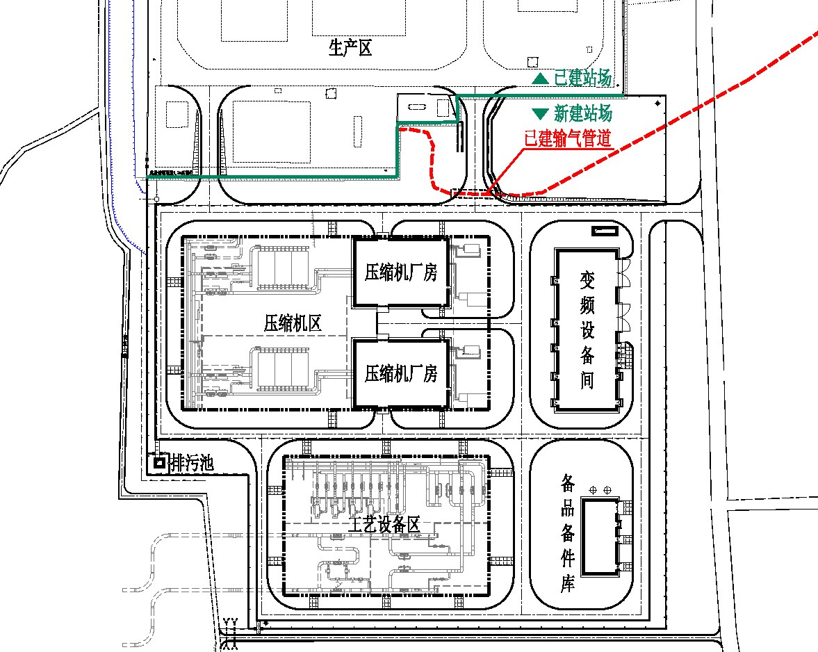 優(yōu)化合建壓氣站初設方案避讓已建管線(xiàn)案例