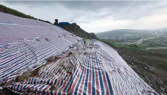 (5)夯填裂縫+防雨覆蓋(圖 5)。為預防滑坡,對滑坡后緣及坡體上的裂縫使用塑料布覆蓋,防止雨水滲入坡體內進(jìn)一步加劇滑坡。