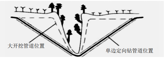 單邊定向鉆穿越不同于水平定向鉆穿越和人工斜井穿越,其利用水平定向鉆技術(shù)成孔和擴孔、利用人工斜井技術(shù)發(fā)送管道到斜井內,是水平定向和人工斜井技術(shù)的結合應用。穿跨越治理工程采用單邊定向鉆加溝底穿越的實(shí)施方案,可以穩定避開(kāi)山體表面的地質(zhì)敏感區域,受施工環(huán)境影響較小,實(shí)施方便經(jīng)濟高效,可成為油氣田管道進(jìn)行穿跨越治理時(shí)優(yōu)先考慮的技術(shù)之一。