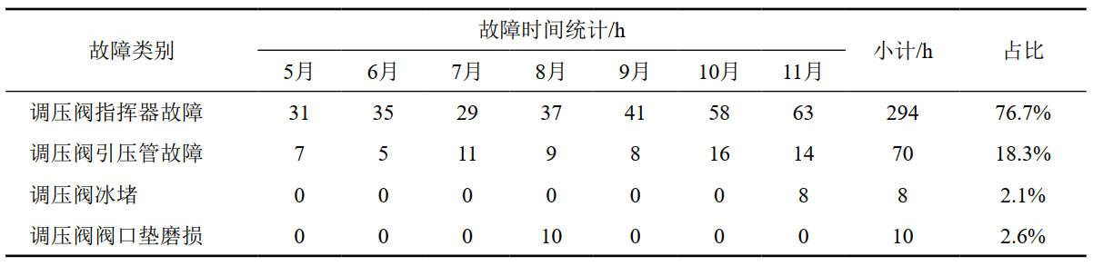 根據表 1可以看出,調壓閥指揮器故障及調壓閥引壓管故障是調壓閥故障的兩個(gè)主要方面。