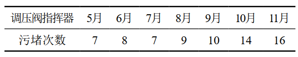 (3)調壓閥指揮器污堵情況。5—9月每月7~10次,10—11月每月14~16次(表 4)。