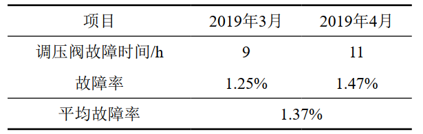 經(jīng)統計,2019年3—4月調壓閥故障率由之前的7.58%降低到1.37%,故障率顯著(zhù)降低(表 6)。