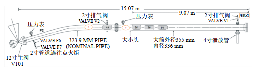 2006年11月23日,Enbridge公司W(wǎng)estspur分公司外徑為323.9 mm的天然氣凝液(NGLs)管道開(kāi)展內檢測作業(yè),采用組合式檢測工具,即由1個(gè)幾何檢測器、1個(gè)漏磁檢測器和4個(gè)隔離清管器組成,如圖 1所示。Enbridge公司專(zhuān)門(mén)為此次內檢測安裝了臨時(shí)收球筒,如圖 2所示。受天然氣凝液(NGLs)輸量影響,采用天然氣推動(dòng)內檢測器運行。