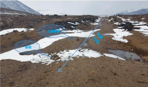 (2)定位。借助RTK靜態(tài)測量精確定位管道彎曲缺陷點(diǎn)坐標(圖 1),管道埋深1.8 m,位于3800 m高海拔牧區,土壤為凍土層,地表有砂石。