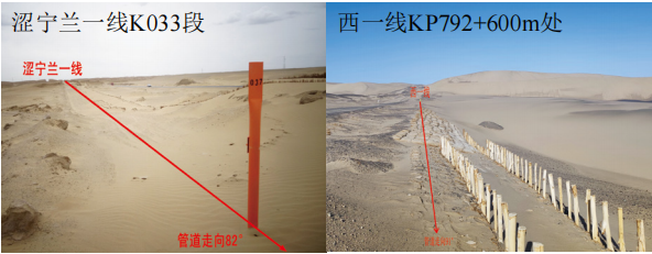 圖 2 西一線(xiàn)庫木塔格沙壟段露管現場(chǎng)及應急處置