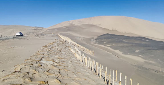 工程防沙指通過(guò)在流沙上設置沙障或其他防沙工程結構,人為控制地表的積蝕變化和改變風(fēng)沙流的搬運堆積條件,保護油氣管道、伴行道路免遭風(fēng)沙的危害。工程防沙不受水分條件限制,適用范圍廣、見(jiàn)效快,可作為植物防沙的先導工程。工程防沙能夠因地制宜采用當地材料,降低工程造價(jià),在沙害治理中應用最為普遍。但工程防沙相對于植物防沙,存在防護年限短,需要經(jīng)常維護、更新的缺點(diǎn)。