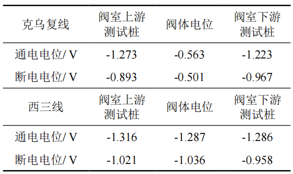 表 3 管道端與關(guān)聯(lián)物搭接部位電位對比