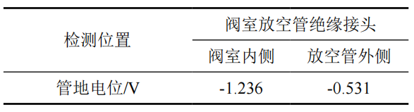 (4)絕緣接頭性能測試 。對西三線(xiàn)閥室絕緣接頭內外側管道電位進(jìn)行測試,結果如表 2所示。對比結果可以看出,西三線(xiàn)閥室放空管道與閥室內部電位有明顯電位差,說(shuō)明絕緣接頭良好。如閥室內側電位偏正、外側電位偏負,電位相差不太大,說(shuō)明絕緣接頭內部存在保護電流泄漏情況。