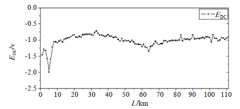 圖 3 成品油管道0~ 110 km電位曲線(xiàn)圖
