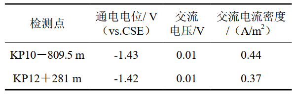 (2)兩處管道補口陰極保護良好,交流干擾程度低,無(wú)須采取交流干擾防護措施。