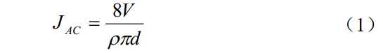 式中:JAC為交流電流密度,A/m2;V為交流干擾電壓有效值的平均值,V;ρ為土壤電阻率,Ω·m;d為防腐層破損點(diǎn)直徑,m。需要注意的是,ρ值應取測試點(diǎn)處與管道埋深相同的土壤電阻率實(shí)測值;π值按發(fā)生交流腐蝕最嚴重考慮,取 0.0113。