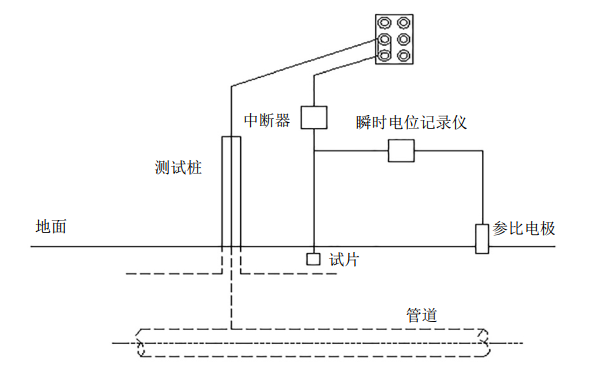 圖 1 測試樁處通電電位和斷電電位測試示意圖