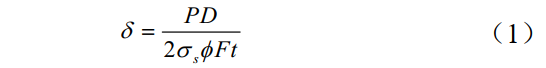 式中, δ 為鋼管壁厚, mm; P 為最大運行壓力, MPa; D為鋼管外徑, 508 mm; σ s為最低屈服強度, 415 MPa; F為強度設計系數,四級地區取0.4; φ 為焊縫系數,取1.0; t為溫度折減系數,取1.0。以7.9 mm鋼管壁厚反算四級地區管道最大運行壓力為5.1 MPa。