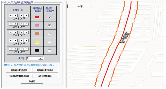 (b)案例個(gè)人風(fēng)險等值線(xiàn)圖