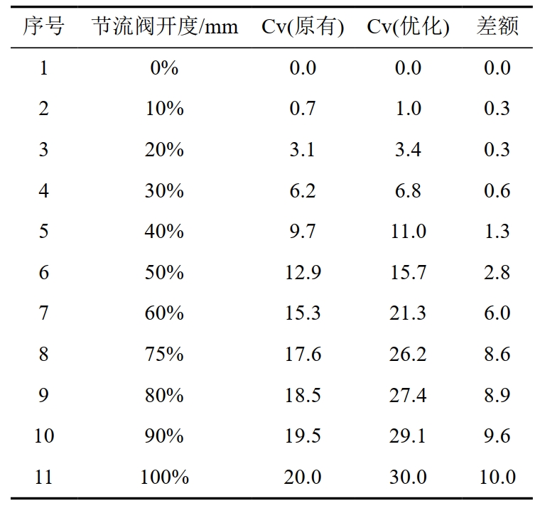 表 1 白九手動(dòng)節流閥Cv—籠套優(yōu)化