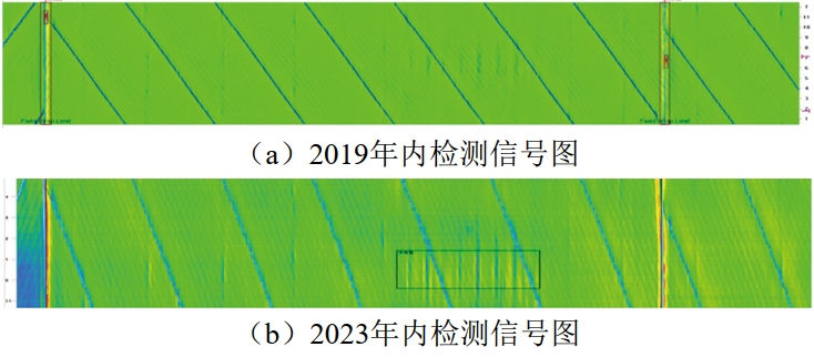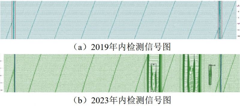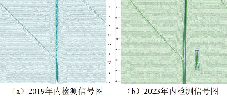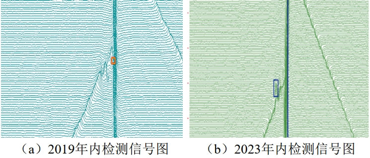 (2)單純通過(guò)內檢測數據列表進(jìn)行對齊可能造成部分缺陷無(wú)法匹配?梢酝ㄟ^(guò)對重點(diǎn)特征內檢測原始信號圖進(jìn)行人工匹配,作進(jìn)一步分析。