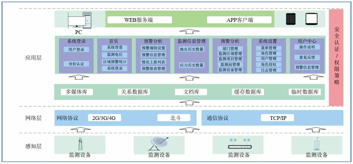 (2)平臺功能。包括地圖展示、實(shí)時(shí)監測、歷史數據、預警預報、報表管理、系統管理等功能模塊,實(shí)現管道地災的實(shí)時(shí)監測與管理。同步研發(fā)手機版“地質(zhì)災害監測預警APP”,具有監測數據瀏覽、預警信息查看、現場(chǎng)信息反饋上報等功能,實(shí)現“現場(chǎng)+后臺”的互動(dòng)。