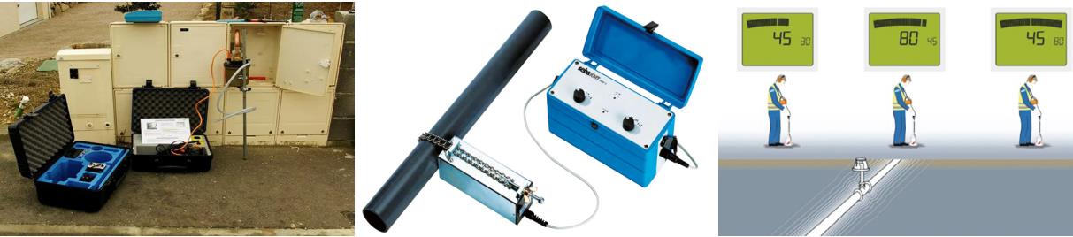 非金屬管線(xiàn)定位儀多采用主動(dòng)特殊頻率信號和超窄帶濾波技術(shù),發(fā)射源與接收通道可一一對應,不會(huì )受到其他聲波及管道信號影響,抗干擾能力強,適用于任何環(huán)境下的管道探測。一般將音頻驅動(dòng)器與燃氣管道附屬接口(放散口、法蘭、調壓設備等)使用快速接頭連接,或通過(guò)鏈條與管道本體緊密捆綁在一起,產(chǎn)生的聲脈沖沿管道傳遞,通過(guò)拾音器接收的信號強弱來(lái)定位,也可探測主管道和支線(xiàn)管道的互通信號。探測時(shí)無(wú)需開(kāi)挖、停氣,連接快速、定位準確。但該設備無(wú)法定深,探測距離受管徑、壓力、埋深、回填土密度等影響較大,如硬質(zhì)路面下的管道較易探測,泥土地、綠化地下的管道由于土壤傳播聲波較差則不易探測,復雜地形環(huán)境下難以分辨確認目標管道。